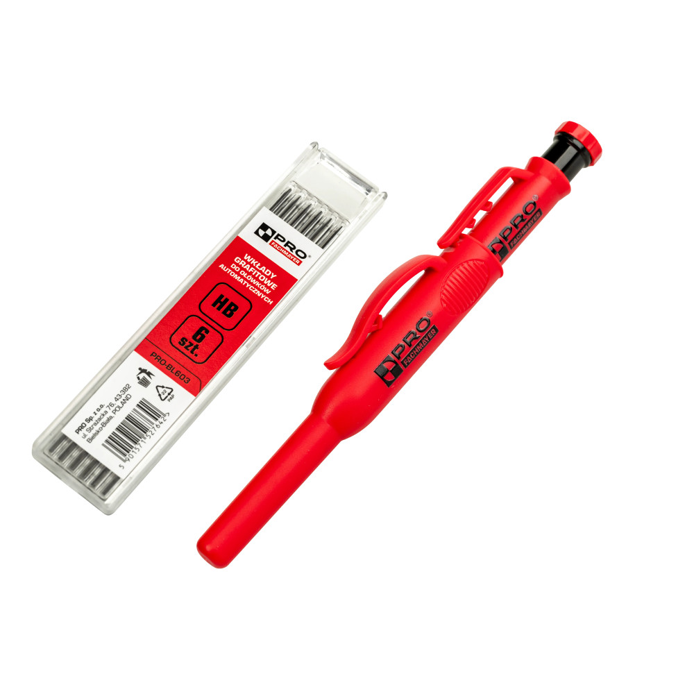 Ołówek automatyczny z kaburą i wkładami grafitowymi 2,8 mm HB to kompletny zestaw do precyzyjnego znakowania w pracach budowlanych i wykończeniowych. Ergonomiczna konstrukcja i praktyczna kabura zapewniają wygodę pracy.