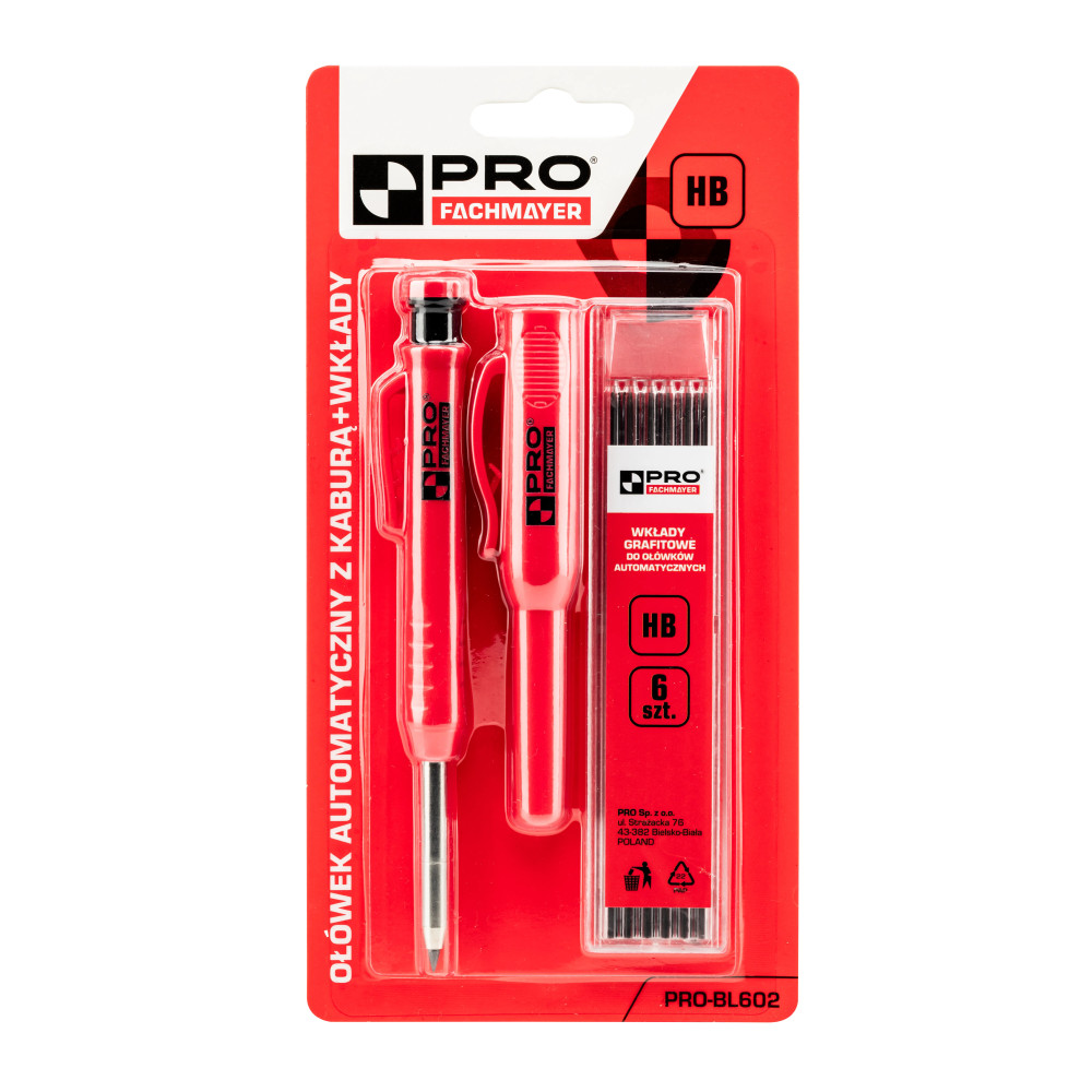 - Ołówek automatyczny 2,8 mm HB z kaburą + wkłady grafitowe Pro Fachmayer