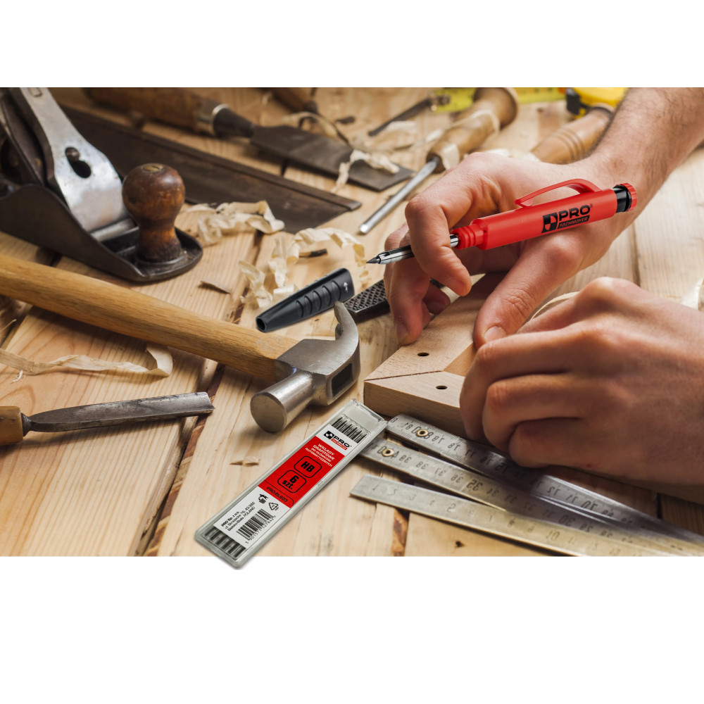 Ołówek automatyczny 2w1 z wkładami grafitowymi 2,8 mm HB idealnie sprawdzi się w szerokim zakresie prac budowlanych, glazurniczych, stolarskich i instalacyjnych. Umożliwia precyzyjne oznaczanie miejsc wiercenia, linii cięcia oraz szczegółowych oznaczeń na różnych materiałach. To narzędzie niezastąpione dla ekip budowlanych, monterów oraz majsterkowiczów, którzy cenią szybkość, precyzję i wygodę pracy.