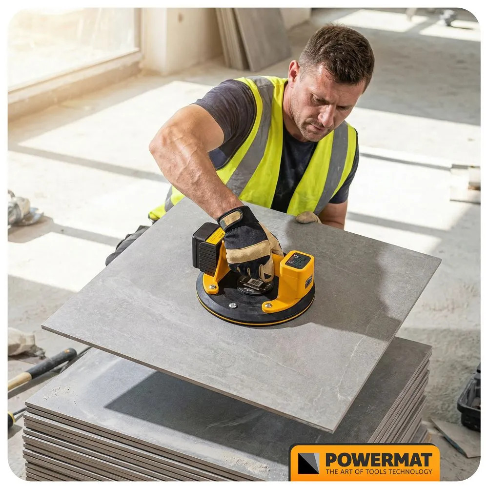 Akumulatorowa przyssawka próżniowa Powermat PM-APPS-200M przeznaczona do przenoszenia płytek, szkła i innych płaskich elementów. Automatyczny system zasysania oraz kontrola podciśnienia zapewniają stabilny chwyt podczas transportu. Urządzenie zasilane akumulatorem Li-Ion umożliwia wygodną pracę bez przewodów.